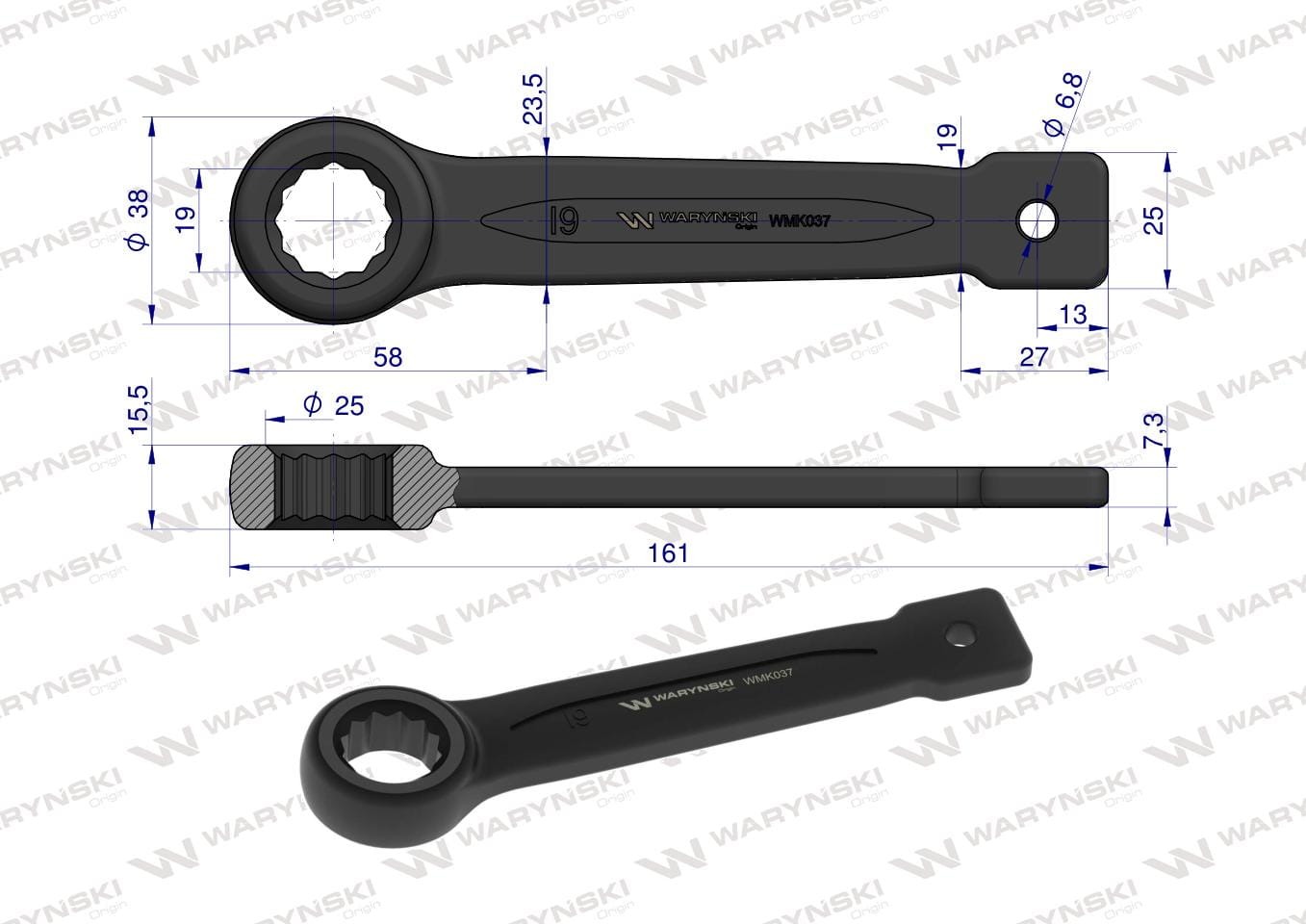 Klucz oczkowy do pobijania 19 mm Waryński