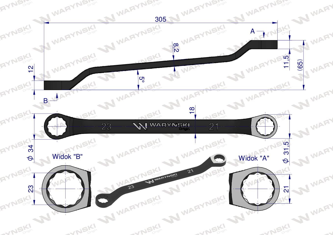 Klucz oczkowy odsadzony 21x23 mm. CrV standard