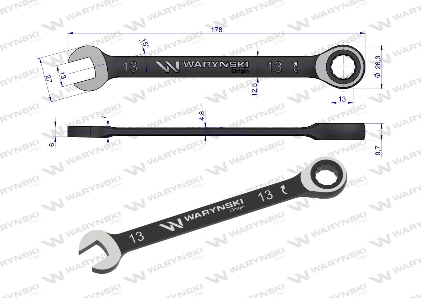 Klucz płasko-oczkowy 13 mm z grzechotką 72 zęby