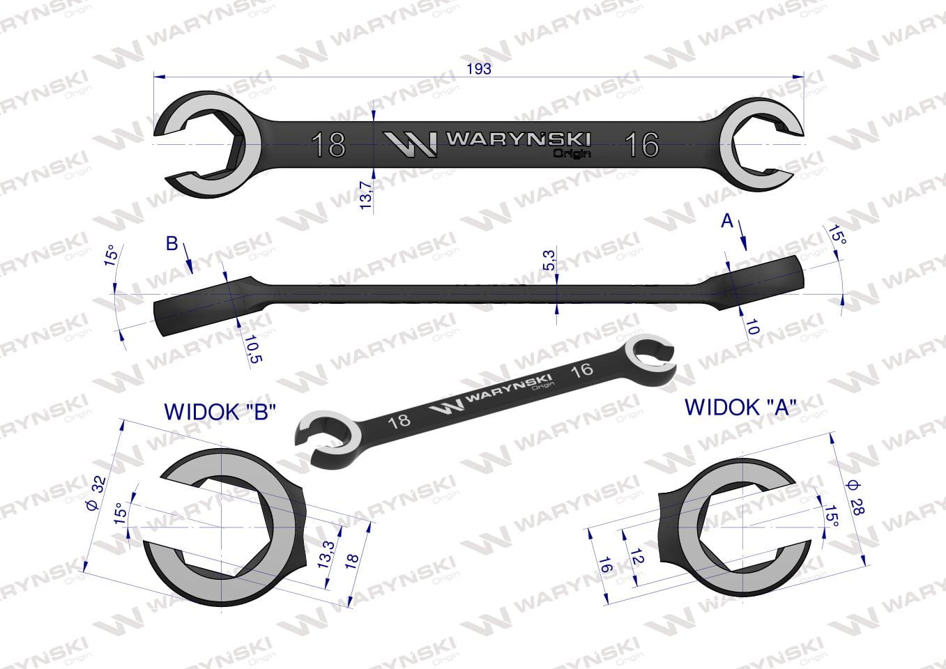 Klucz płasko oczkowy otwarty 16x18 Waryński