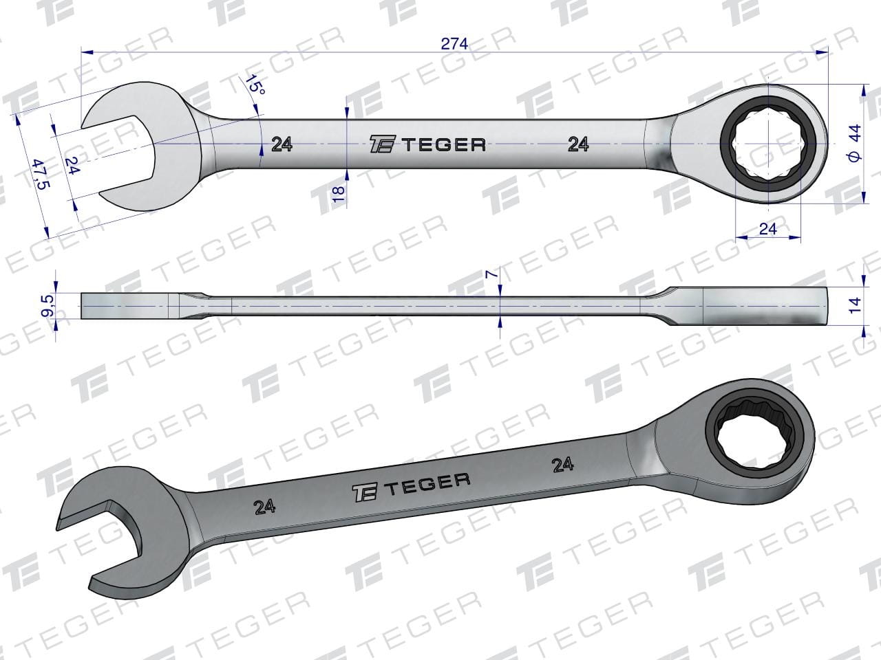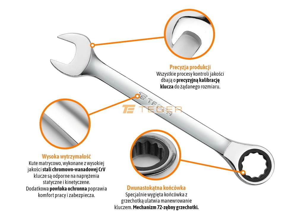 Klucz płasko-oczkowy z grzechotką 24 mm TEGER