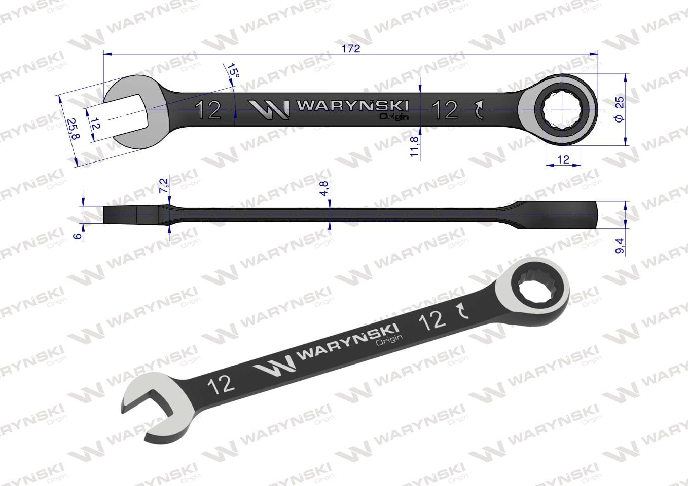 Klucz płasko-oczkowy12 mm z grzechotką 72 zęby