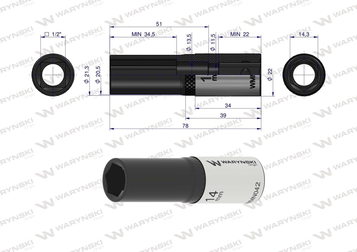 Nasadka sześciokątna 1/2". 14 mm. długa. CrV50BV30