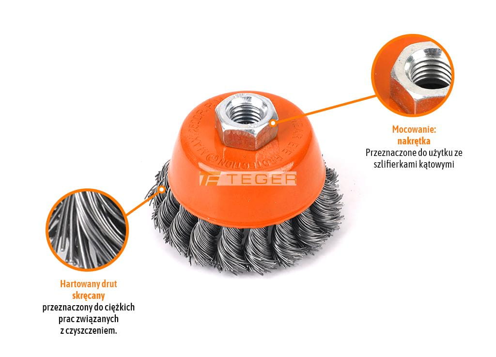 Szczotka doczołowa z nakrętką-drut skręcany M14/80