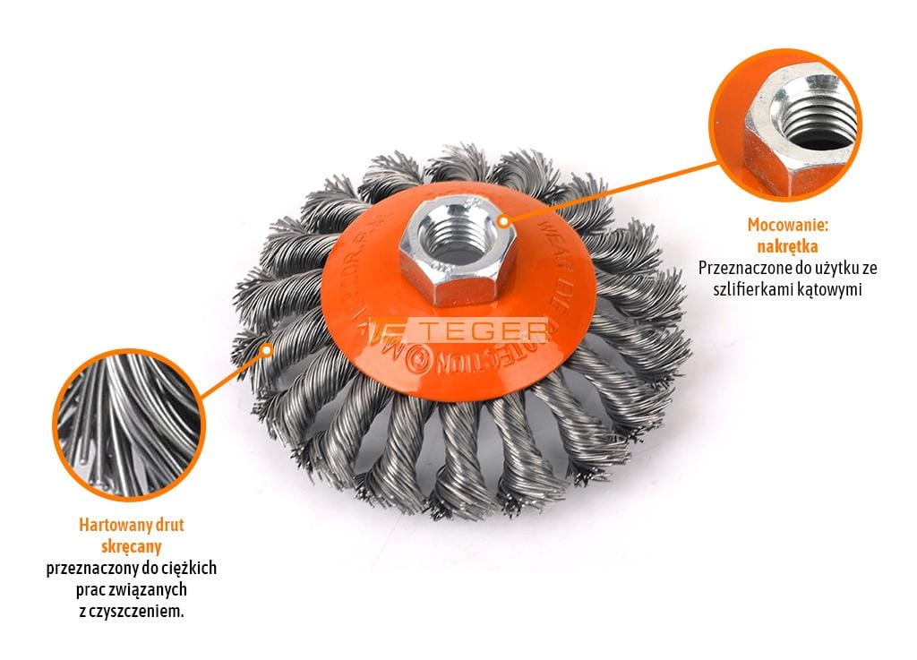 Szczotka tarczowa z nakrętką - drut skręcany M14/1
