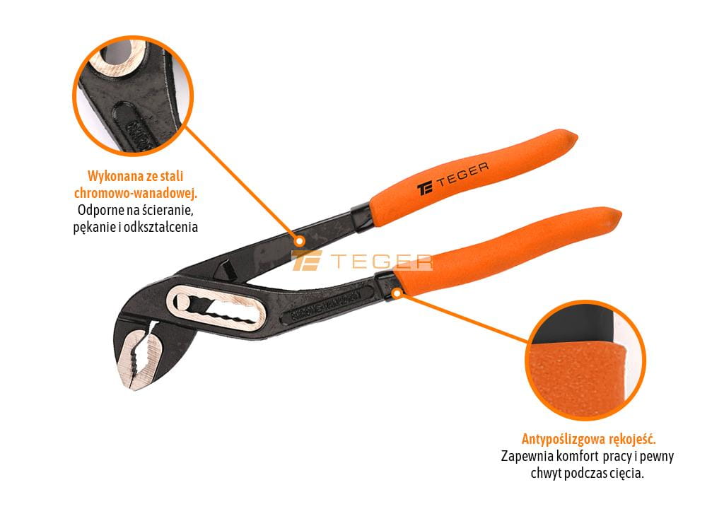 Szczypce nastawne do rur 250 mm TEGER