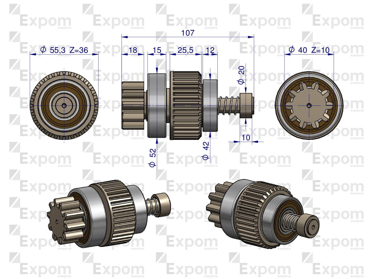 Zespół sprzęgający rozrusznika z reduktorem MF3